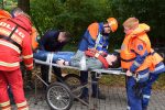 Bereits am frühen Morgen sorgte ein Team der Realistischen Unfalldarstellung dafür das alle Verletzten realistisch geschminkt wurden. Aufgrund der angenommenen Überflutungen mussten die Retter von der Jugendfeuerwehr und der DLRG – Jugend mit Schlauchbooten die Verletzten suchen und transportieren. Für die Erstversorgung errichteten die Malteser Jugend und das Jugendrotkreuz einen Behandlungsplatz und bauten Sanitätszelte auf.